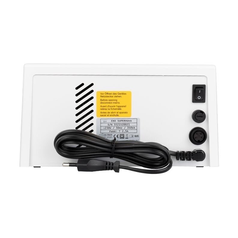 Ova električna turpija ima nemački sistem za usisavanje prašine. Uređaj je namenjen za profesionalni pedikir. EXO SUPERNOVA ima glatku kontrolu brzine od 0 do 30.000 obrtaja u minuti, uz mogućnost promene smera rotacije i podešavanja snage aspiratora. Posebna prednost uređaja je elektronski displej koji pokazuje trenutnu brzinu, stepen punjenja filtera i snagu ugrađenog aspiratora od 350W.