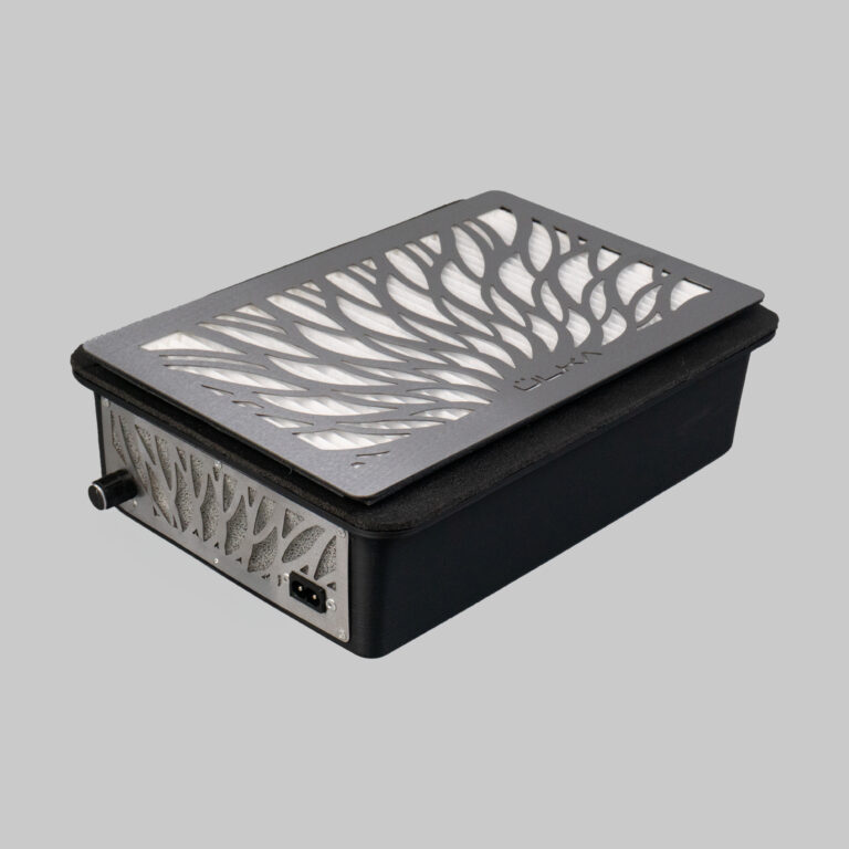 Sistem sa dva ventilatora pruža stabilno, uravnoteženo usisavanje po celoj površini — od centra do ivica. Sa snagom od 60W i brzinom usisavanja od 3,2 m/s, brzo uklanja prašinu od noktiju, održavajući vaš radni prostor besprekornim. Bočni izduv vazduha drži protok vazduha dalje od klijenta i tehničara.